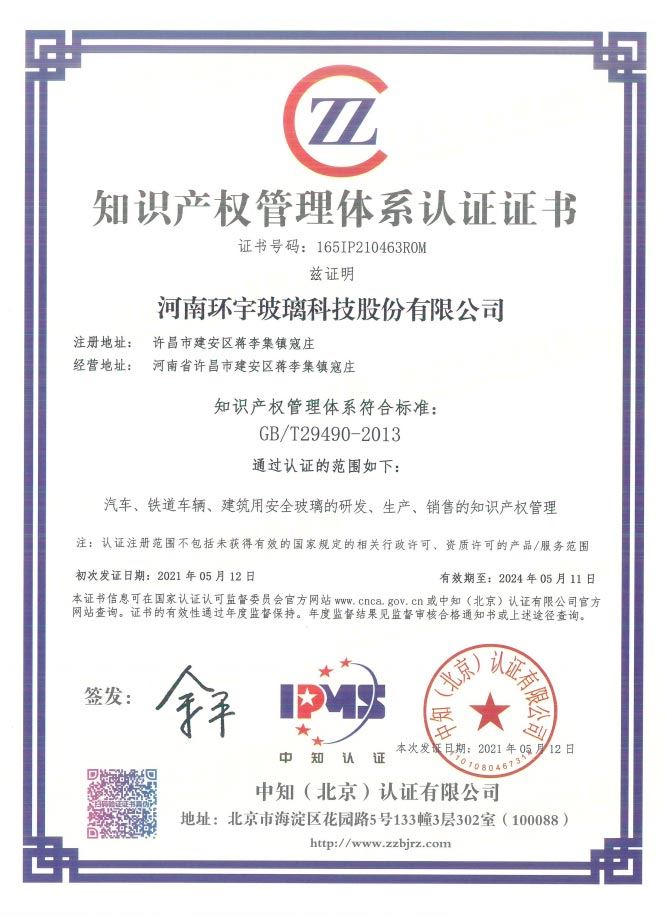 知識(shí)產(chǎn)權(quán)管理體系認(rèn)證證書